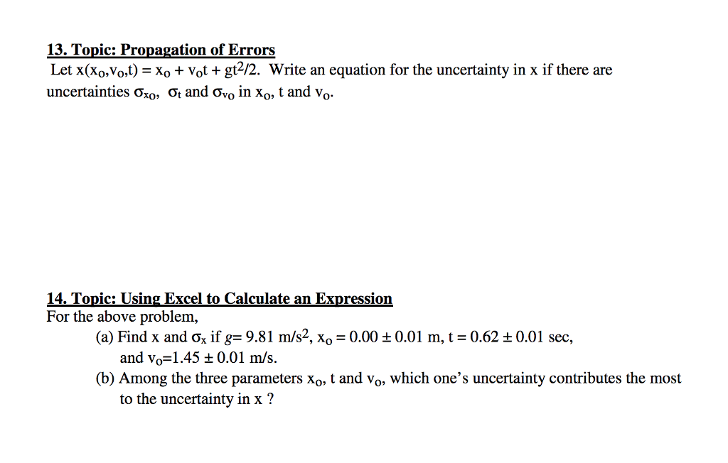 Solved 13 Topic Propagation Of Errors Let X Xo Vol Ogt Chegg Com