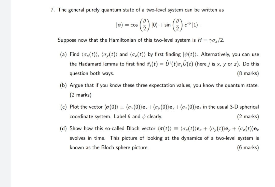 7 The General Purely Quantum State Of A Two Level Chegg Com